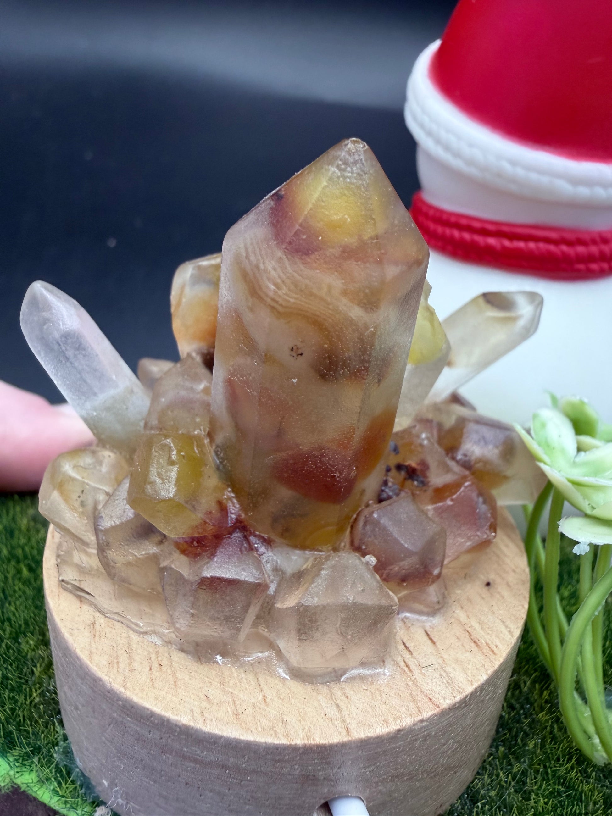 A magical festive décor piece combining Christmas charm with the beauty of crystals. This adorable snowman display features a glowing golden healer colour-changing crystal cluster, perfect for adding warmth and whimsy to your holiday setup.