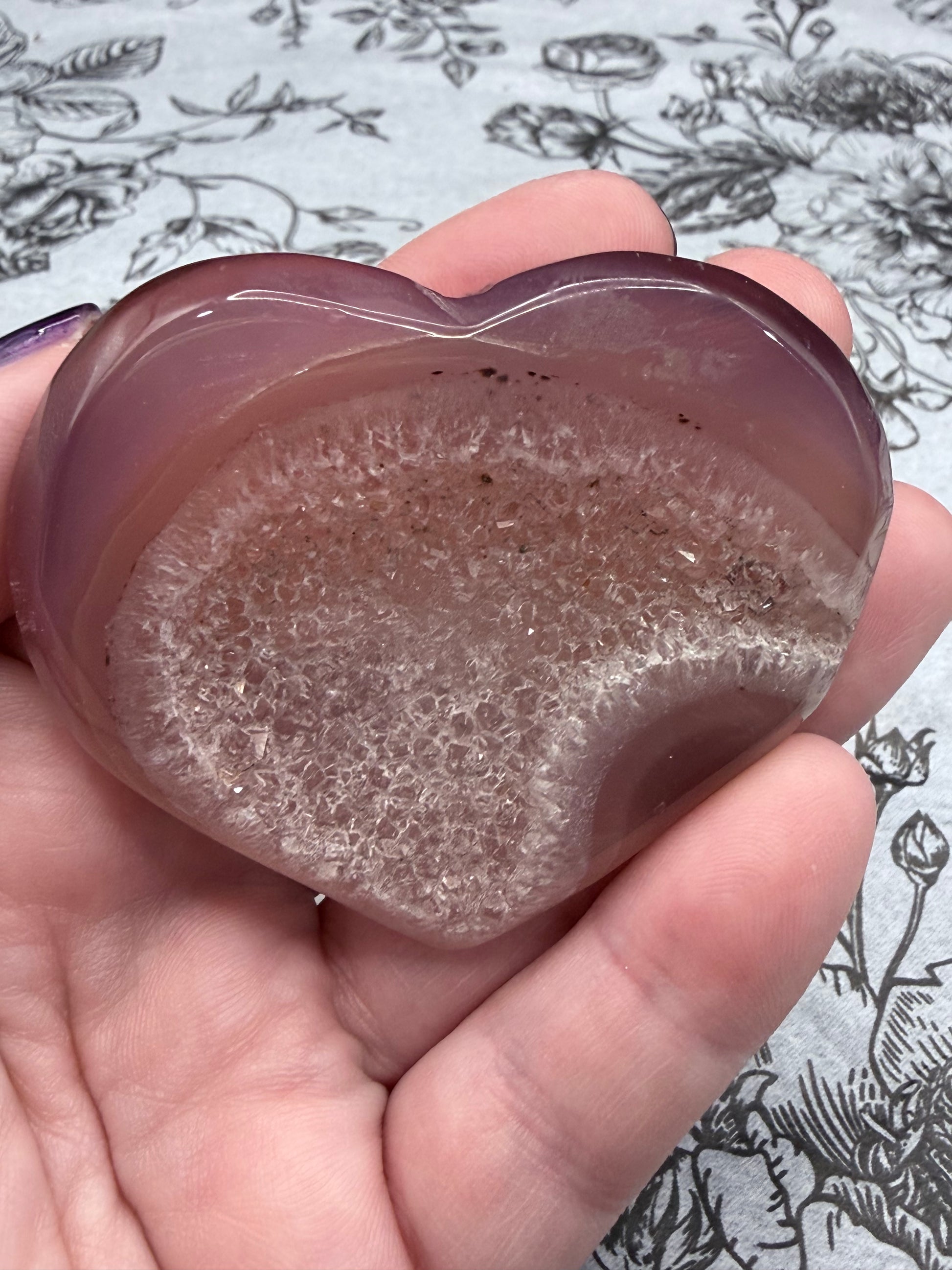 Pink Agate Druzy Heart (58g, 6.5 x 5.2cm),