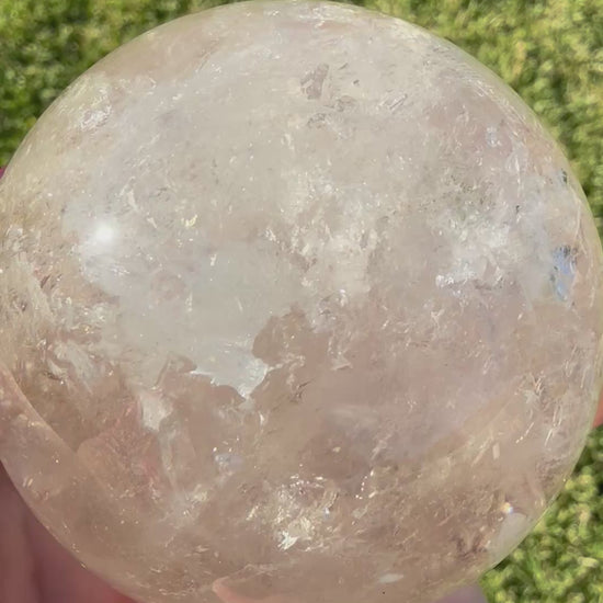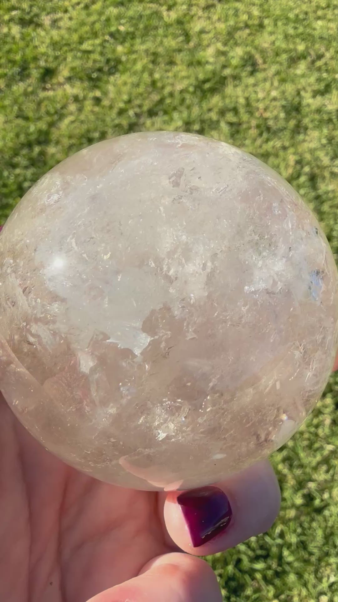 This elegant Clear Smoky Quartz Rainbow Sphere captures light in every direction ā filled with shimmering rainbow flashes and delicate golden inclusions that glow in the sunlight š