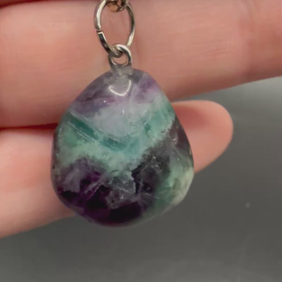 Carry the magic of Rainbow Fluorite wherever you go! Each keychain features a polished natural fluorite crystal with unique bands of purple, green, and clear tones.