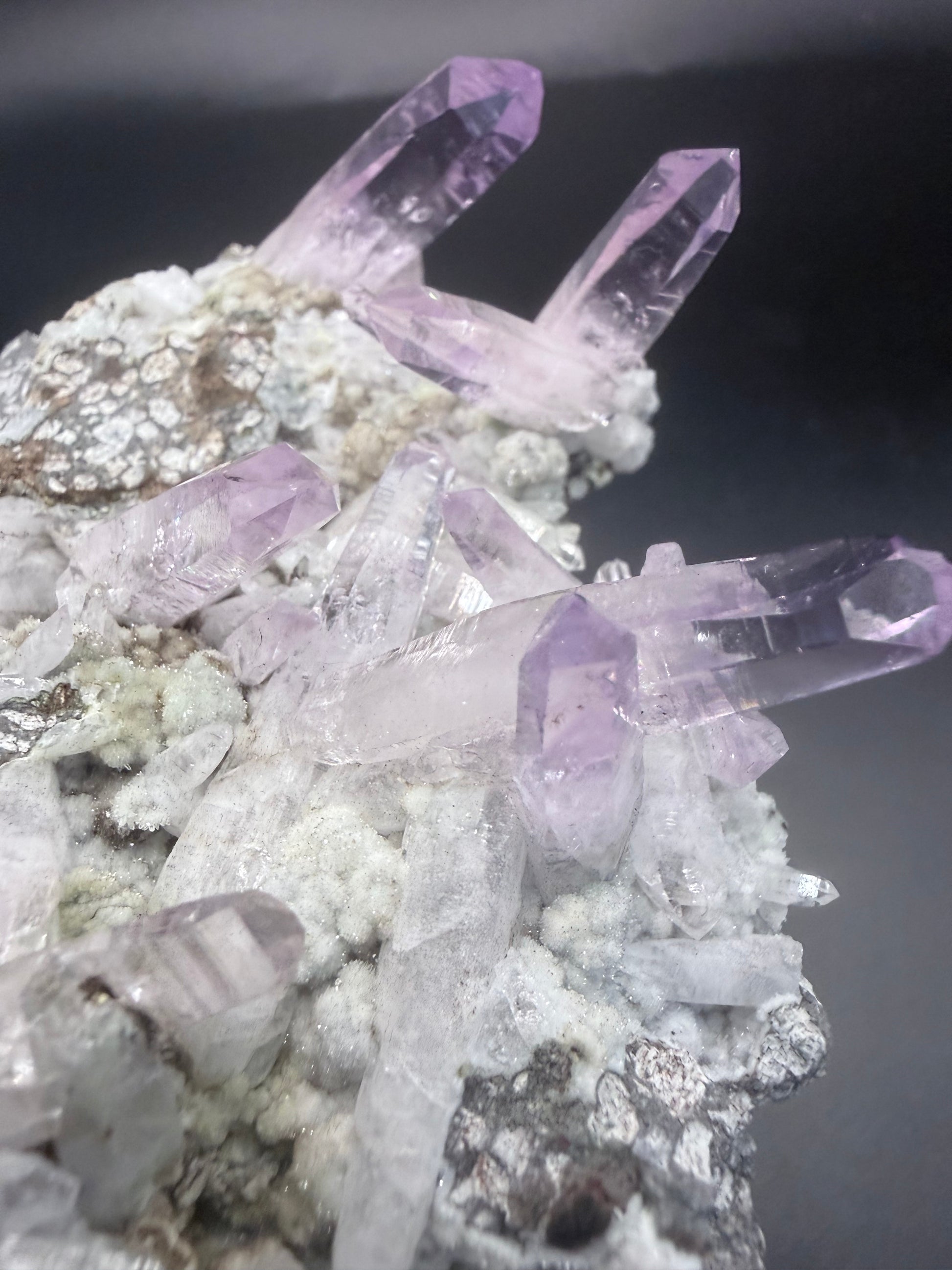 This magnificent 260 g Vera Cruz Amethyst (12 × 8.6 cm) showcases an incredible array of slender, glass-clear violet points sprouting elegantly from a natural matrix. Each crystal is beautifully terminated, revealing the signature light-to-deep purple zoning unique to Vera Cruz, Mexico. 🌄