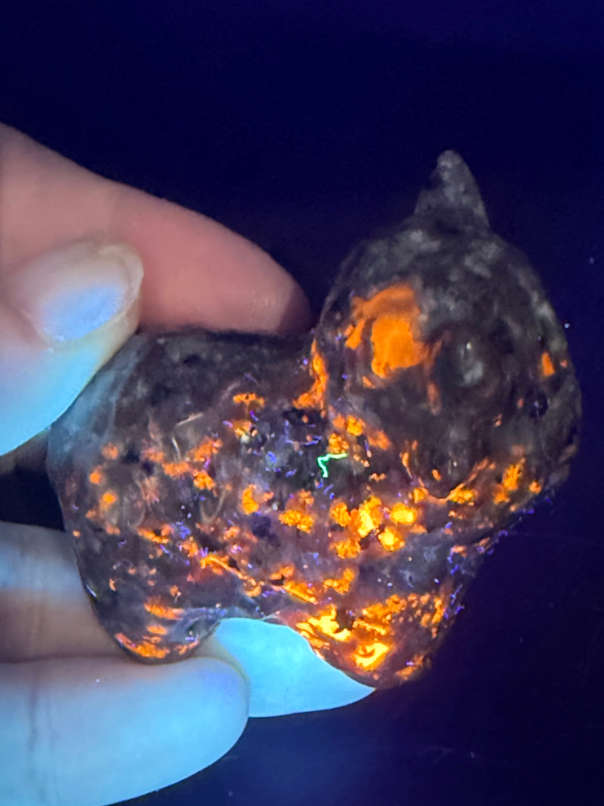 Often described as a stone that helps bring light to what’s hidden, perfectly reflected in its UV glow.