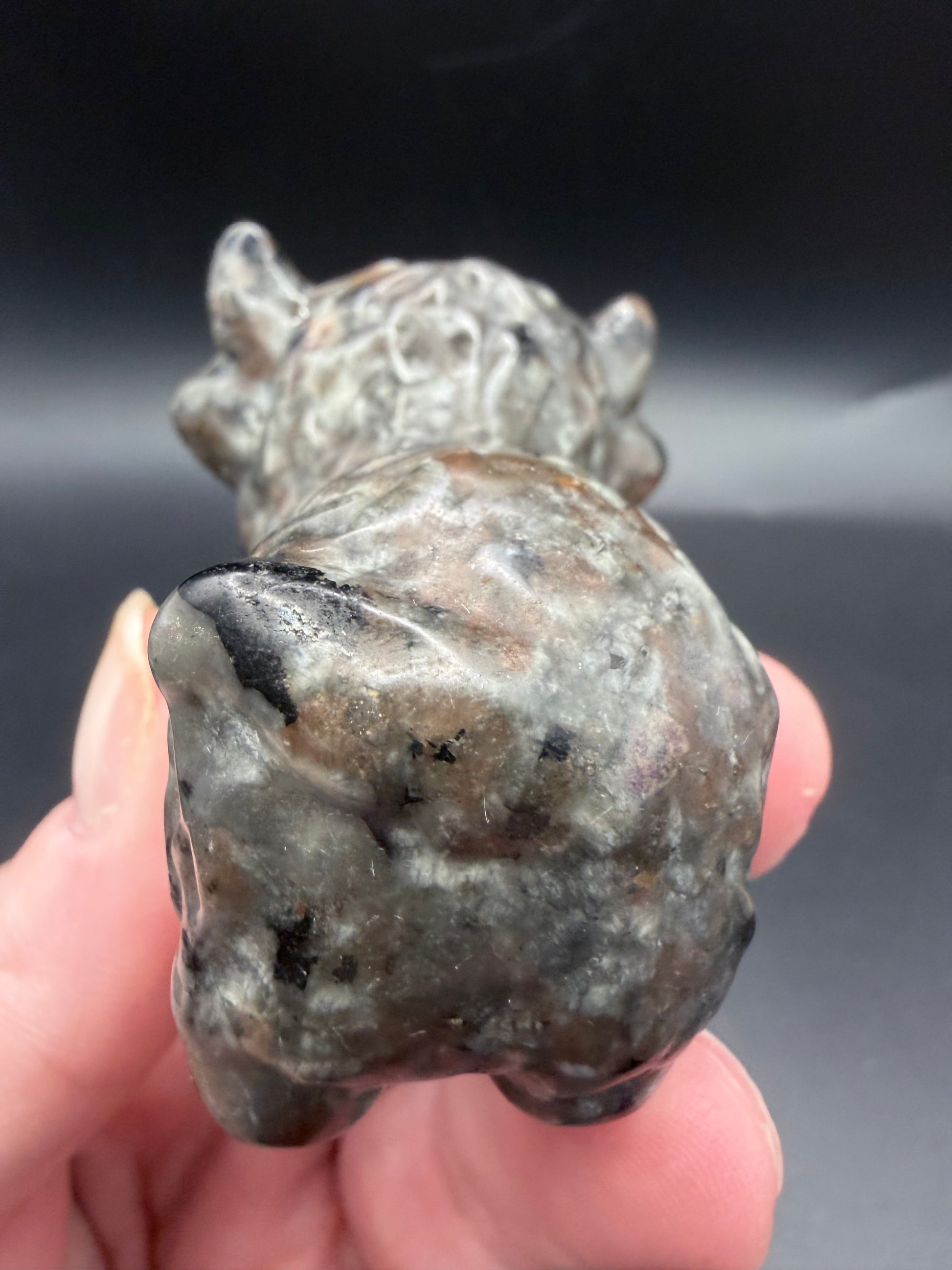 Bring a little magic to your collection with this adorable Yooperlite Highland Cow carving. At first glance, it appears as a soft grey stone with natural markings — but under UV light, it reveals an incredible fiery orange glow, making it a true hidden treasure.