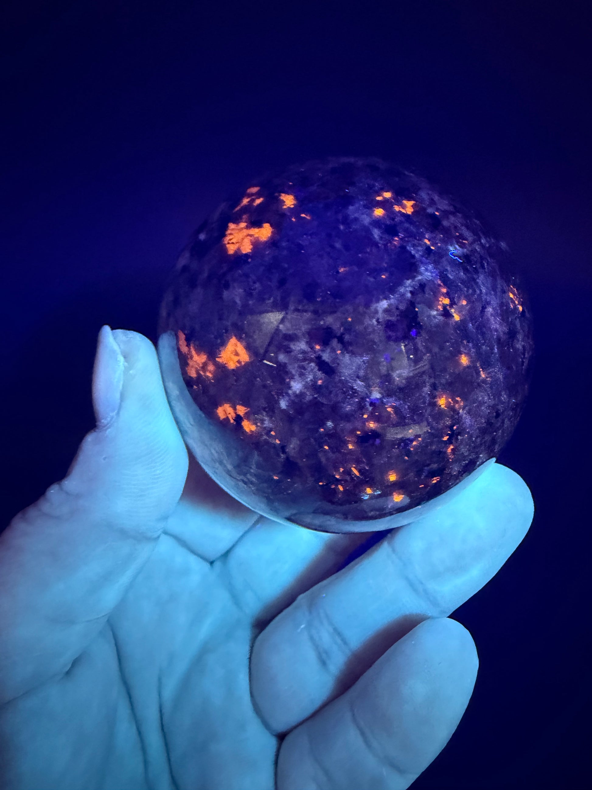 This sphere glows bright orange under UV light due to its natural sodalite content.